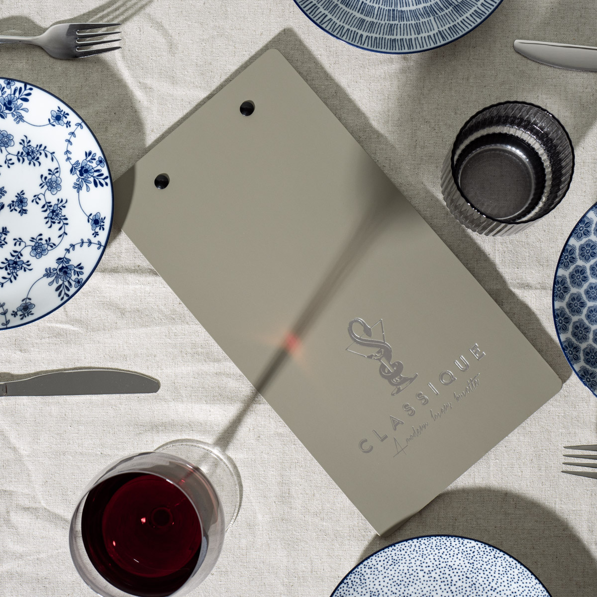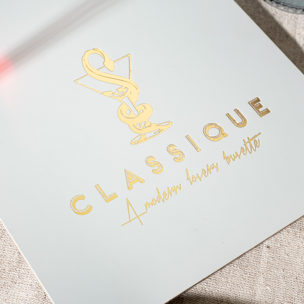 Personalised BlockingCustomise your menu board with your own text or logo in a range of colours. Choose from Gold, Silver, Copper, Black, Brown, White or Clear Foil blocking. One-off set up cost £40 + £1.25 per item |