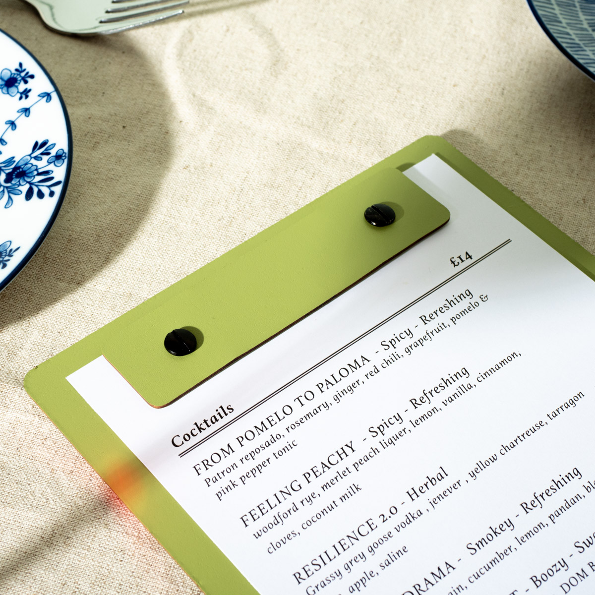 These stunning and colourful Tariff Menu Boards made out of recycled leather are our most eco-friendly menus. Each of these premium 'soft feel' menu boards has been produced ecologically using recycled components and the result is a tactile menu that looks as good as it feels.