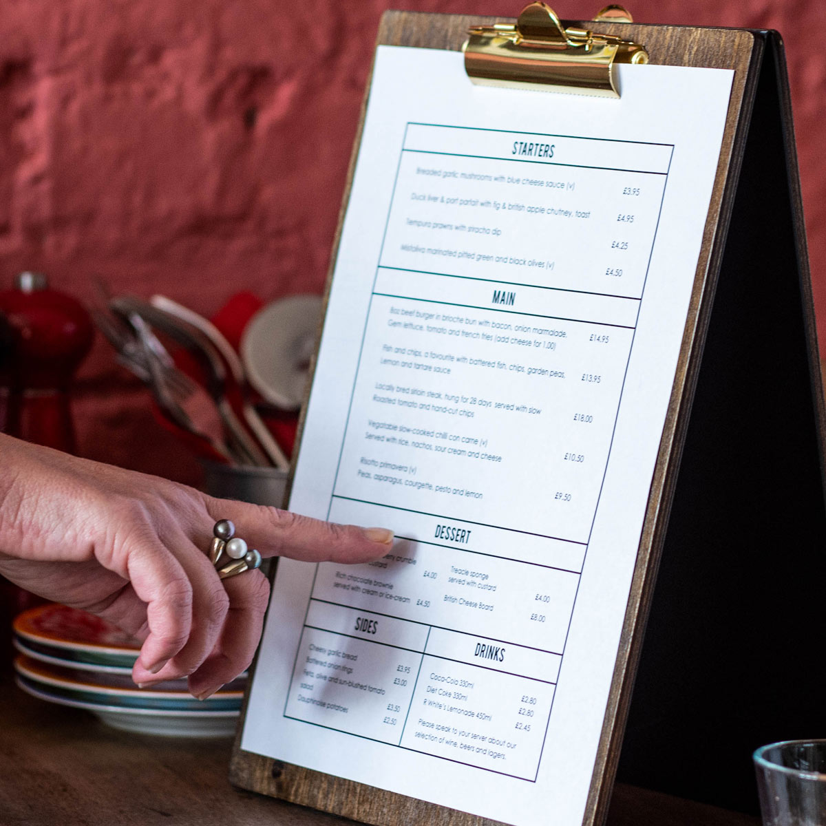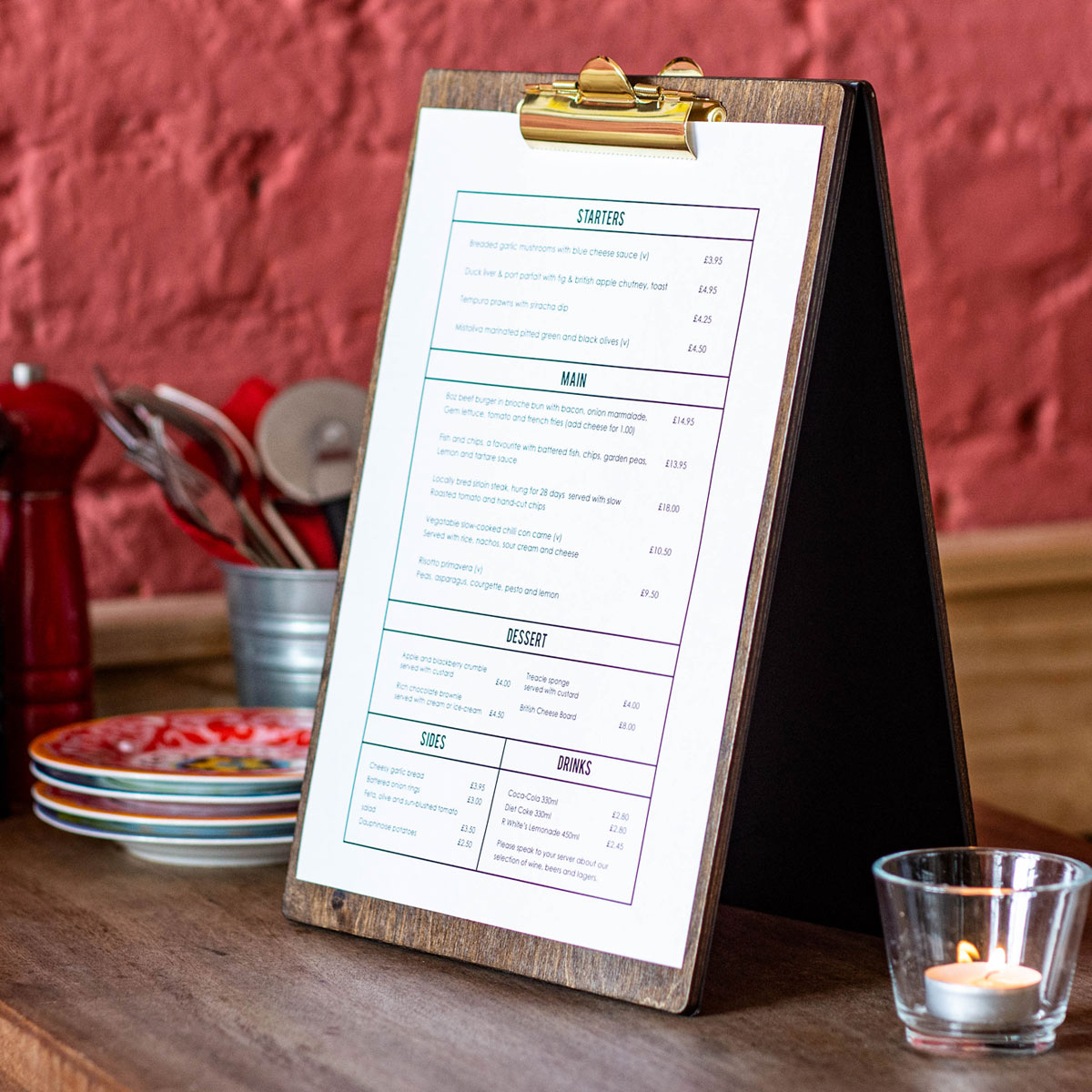 Provide a safer environment for your customers with contactless restaurant menus that can easily be displayed with minimal handling. We have designed these table menus to be displayed by staff, and removed by staff.
